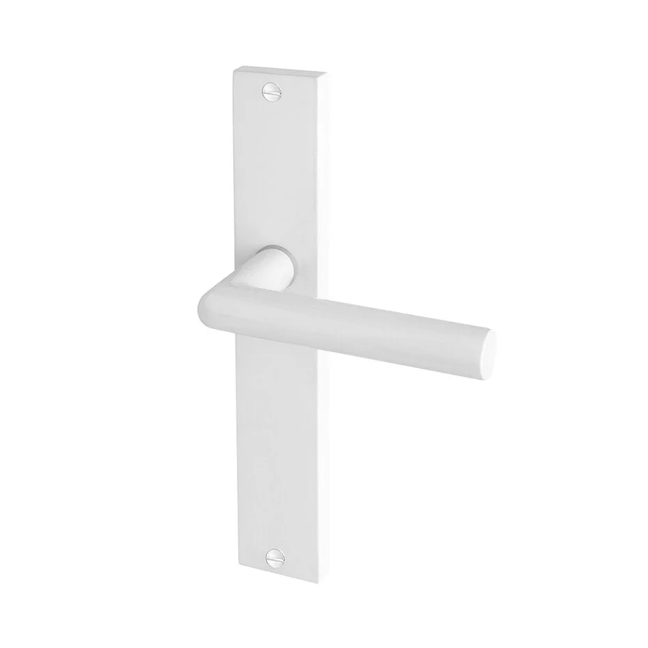 Deze geveerde deurklink combineert een tijdloos design met optimaal gebruiksgemak. Het strakke rechthoekige schild en de hoogwaardige witte poedercoating zorgen voor een moderne uitstraling die moeiteloos past in vrijwel elk interieur.