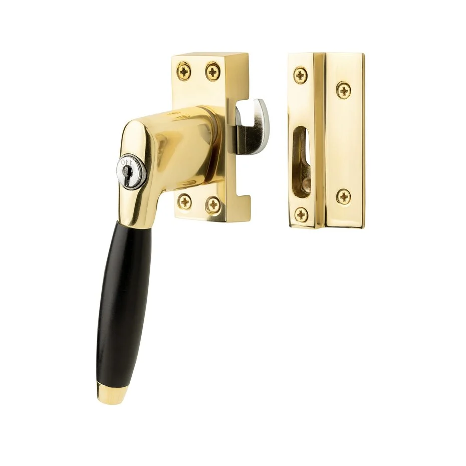 Afsluitbare raamsluiting Klassiek – Messing gelakt (links)