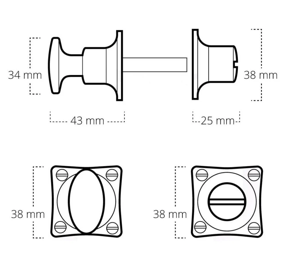 Dit WC-slot in jaren 30-stijl met vierkante rozetten is een stijlvolle en praktische oplossing voor toilet- en badkamerdeuren. Aan de binnenzijde bevindt zich een draaiknop om de deur te vergrendelen, terwijl de buitenzijde is voorzien van een vaste knop met noodontgrendeling.