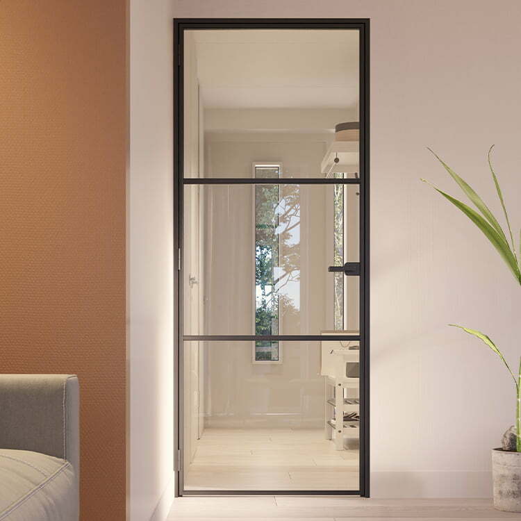 • Deuren uit de Slimline serie met een klinksluiting hebben in het formaat 211,5 x 83 cm 3 glasvlakken