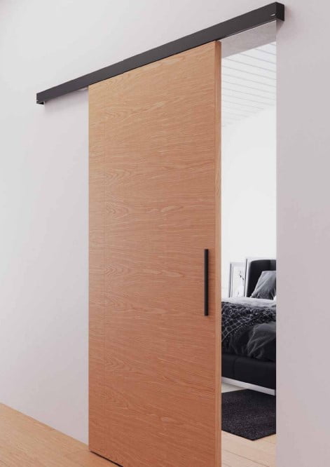 Op locaties waar een scharnierdeur teveel ruimte inneemt, of wanneer het gat van de deur zich niet leent voor een standaard maat deur, is een schuifdeur de ideale oplossing. Modern of klassiek, industrieel, landelijk of futuristisch; schuifdeursystemen passen in ieder interieur. Om een schuifdeur goed te laten functioneren is er een schuifdeur railsysteem nodig. Dat zijn de elementen die aan de wand worden bevestigd om een houten– of stalen schuifdeur aan op te hangen. In tegenstelling tot een scharnierdeur die in de deuropening wordt gehangen, komt een schuifdeur tegen de wand te hangen. Door een schuifdeur railsysteem op de wand te bevestigen schuift het paneel langs de wand zonder uitdraai. Dat is erg praktisch omdat je dan meer ruimte creëert in je kamer.