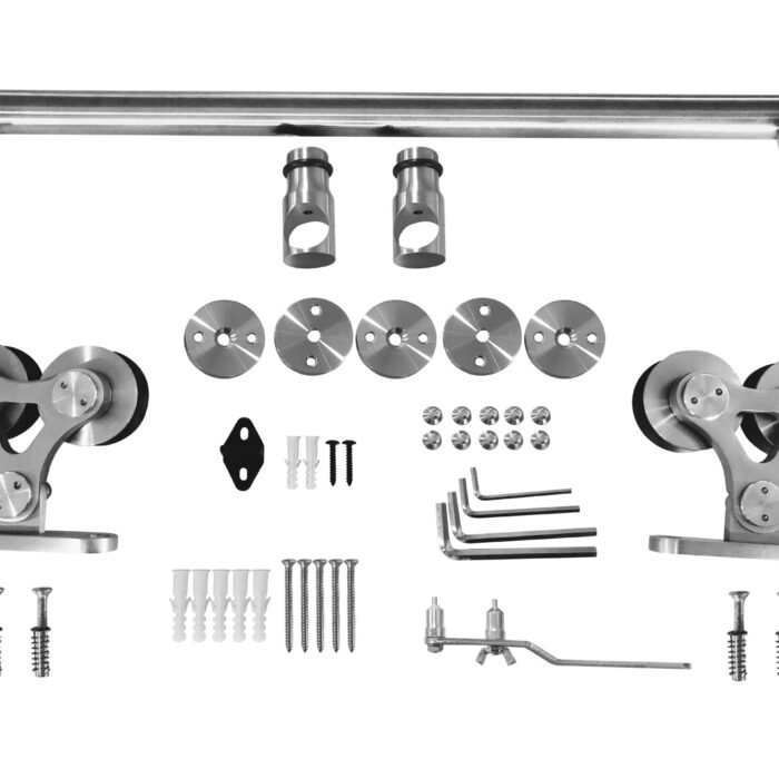 Op Loftdeur vind je ook RVS schuifdeursystemen, oftewel roestvrij staal, dit is materiaal dat garant staat voor een lange levensduur en comfortabel gebruik, ook buitenshuis! Wij leveren het RVS schuifdeurbeslag met 2 rollende elementen (Dubbel) of met 1 rollend element (Enkel). De kogellagers in de wielen zorgen voor een geluidsarme en soepele beweging over de rail. Het systeem is eenvoudig te monteren met de montagehandleiding.